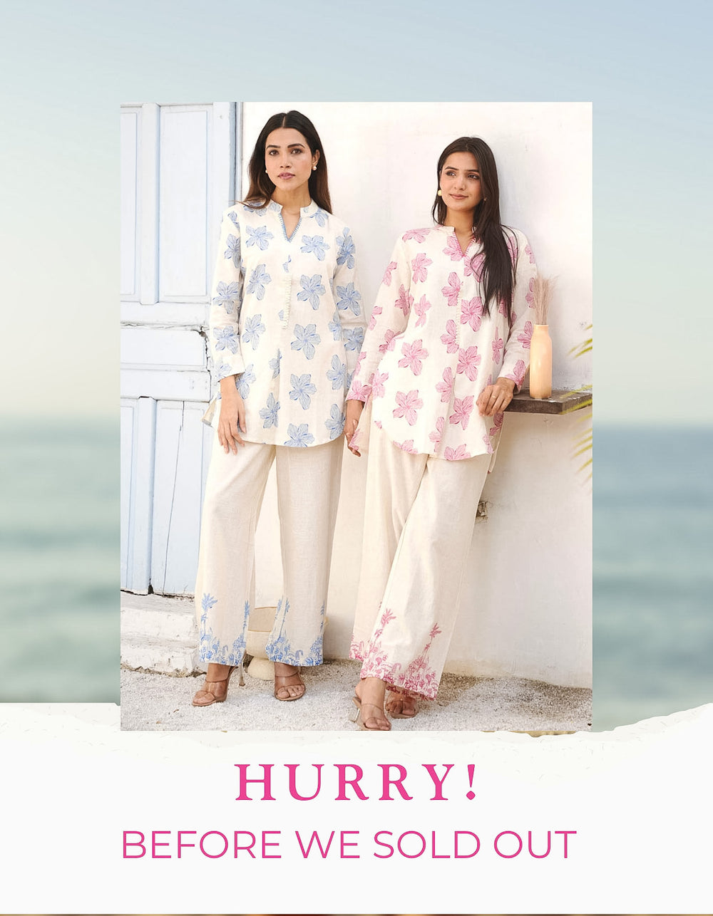 CREAM & BLUE COTTON SLUB CO-ORD SET