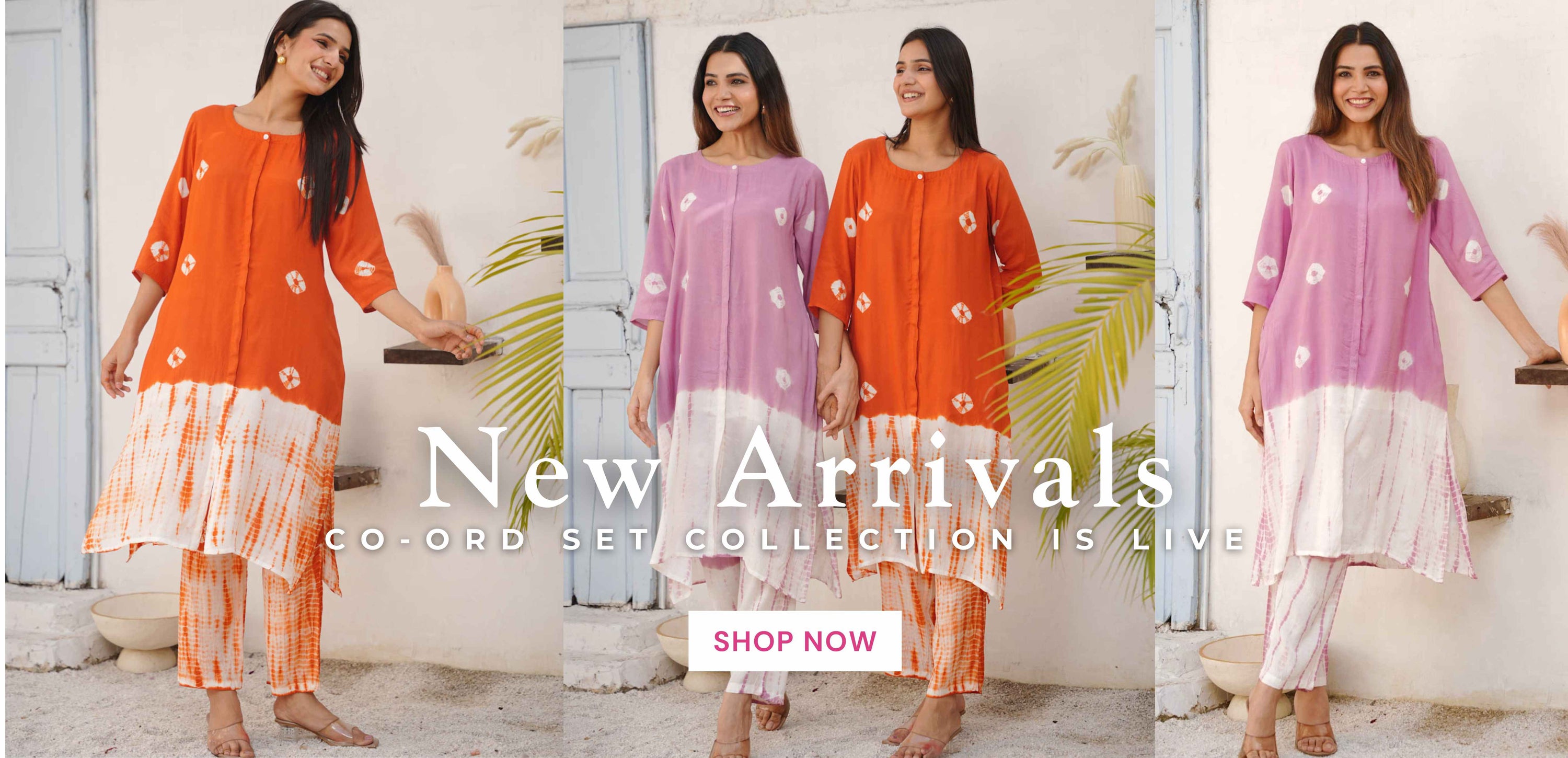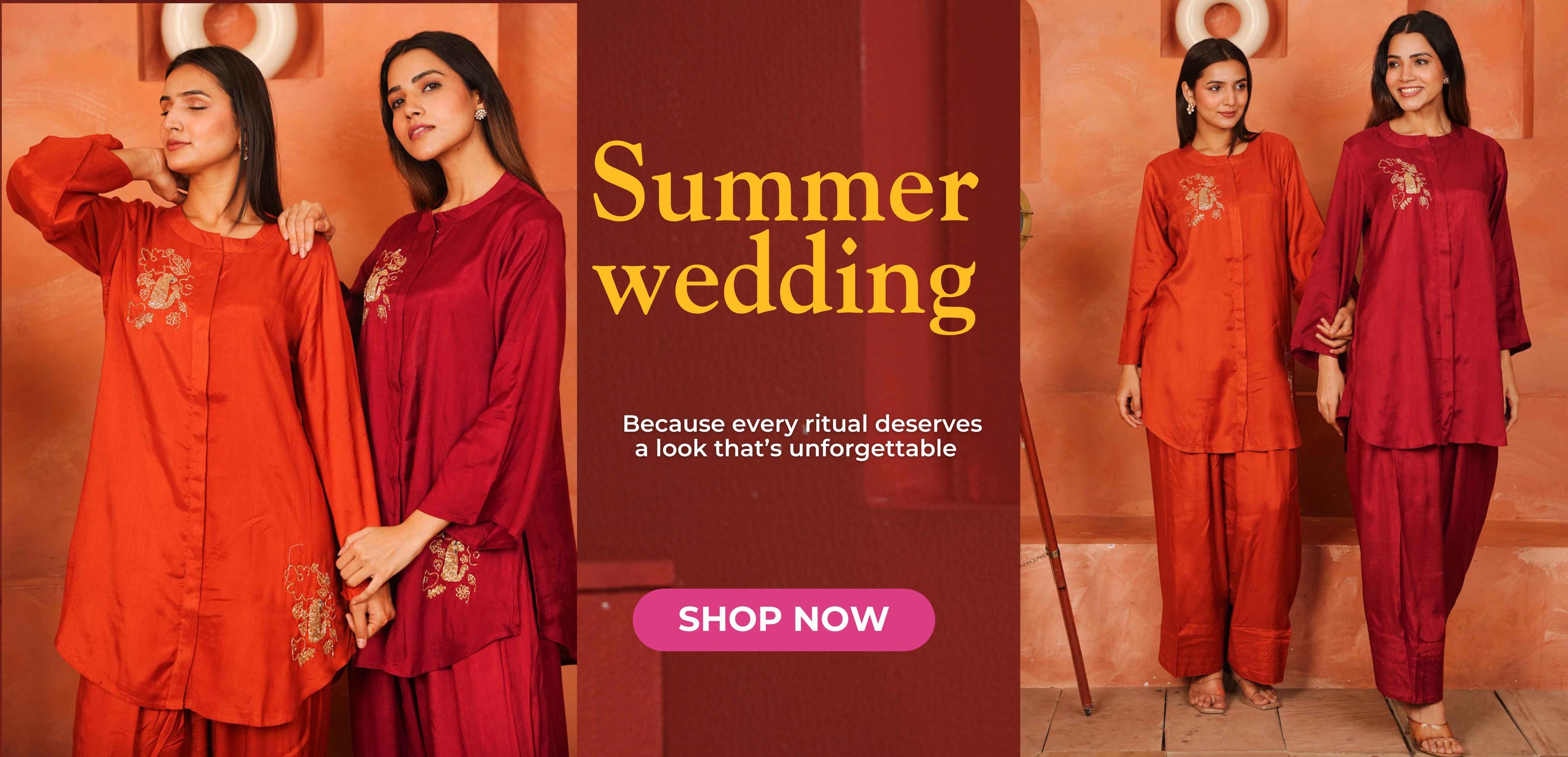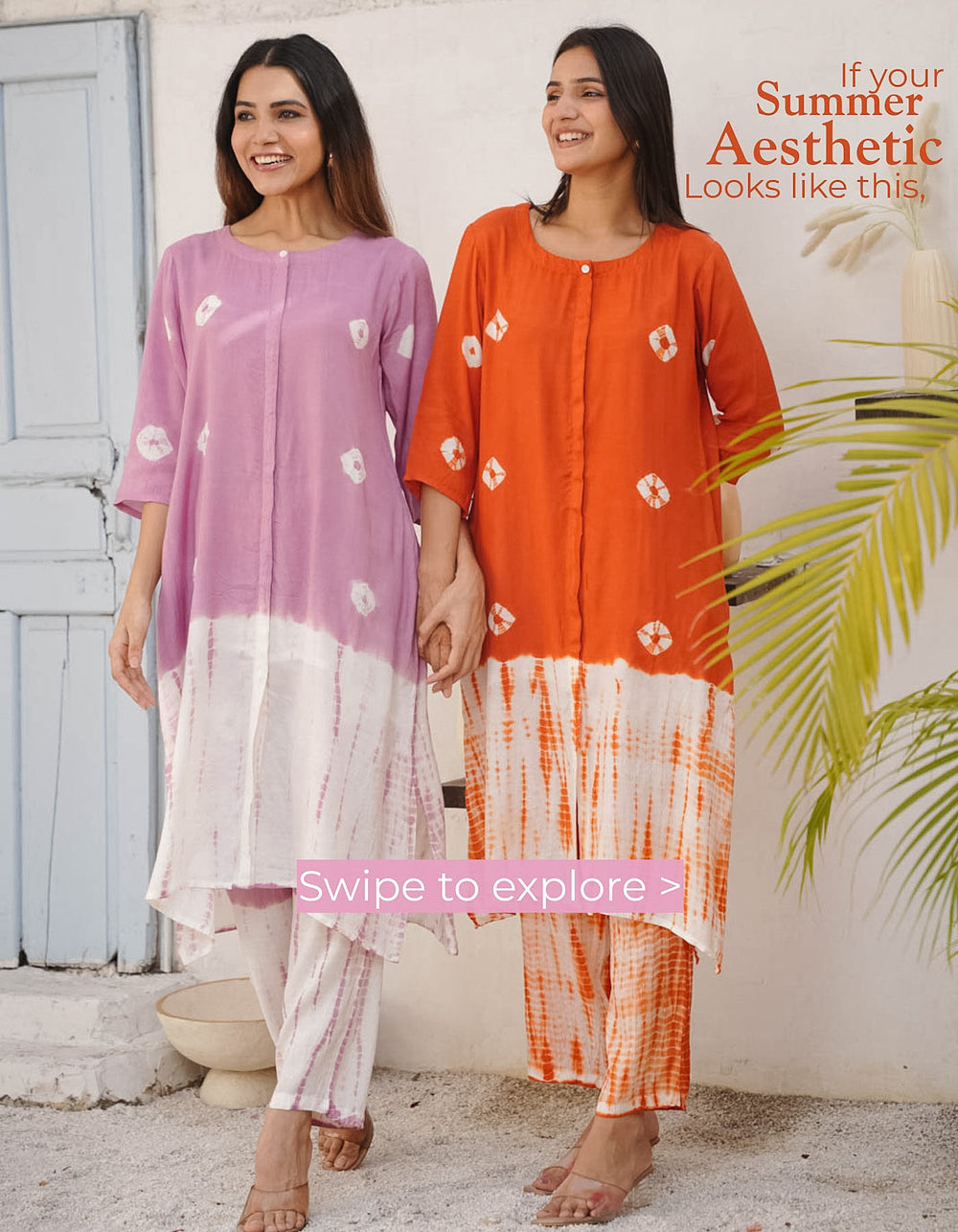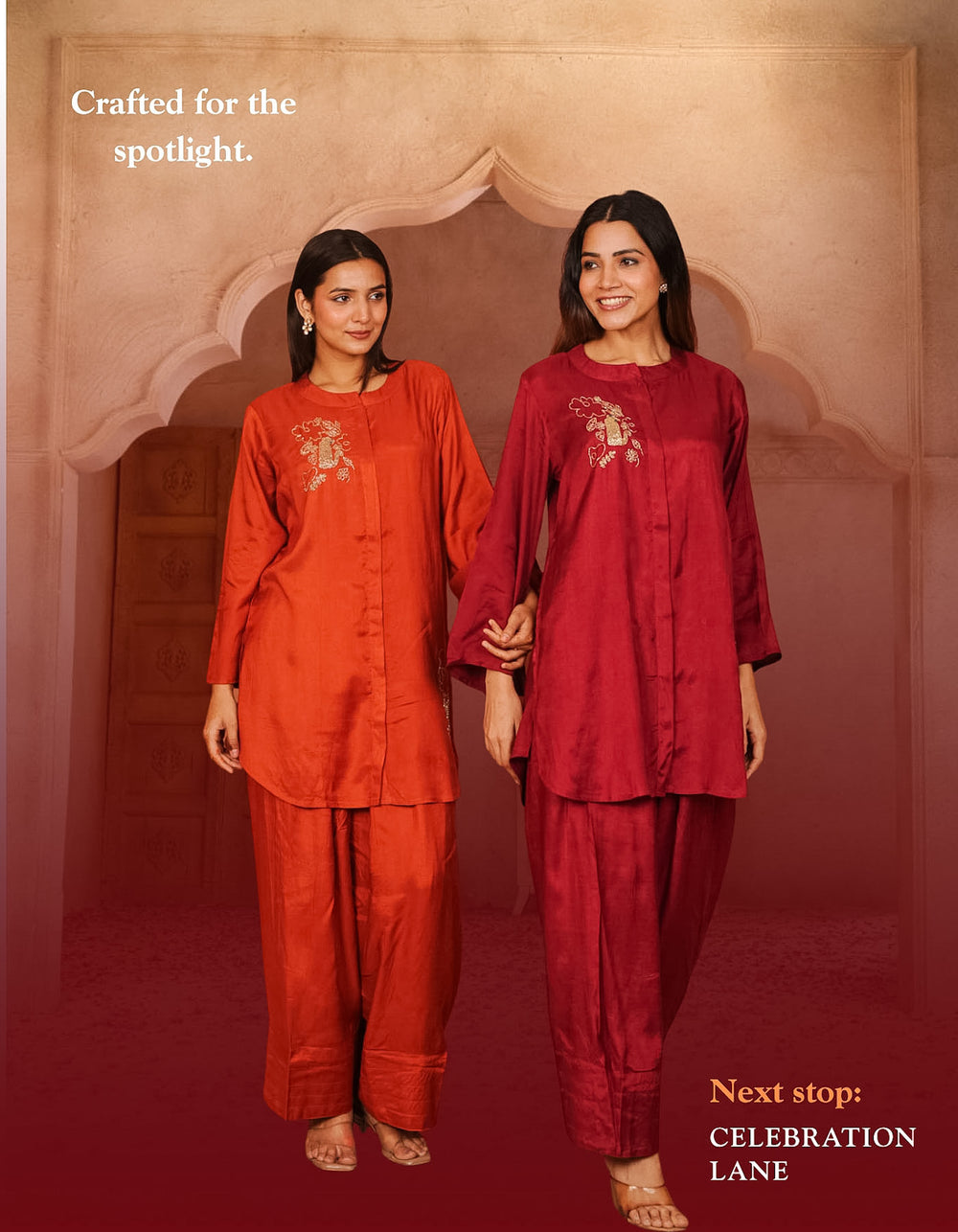 ORANGE SHANTUNG SILK CO-ORD SET WITH BANDHEJ & TIE DYE