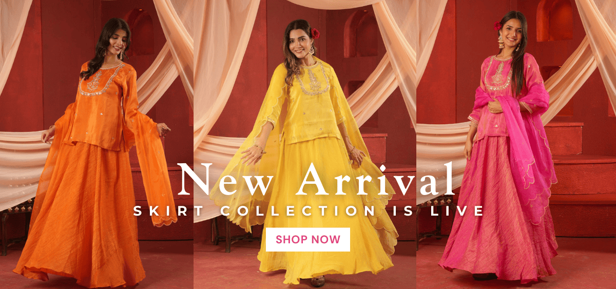 MARIGOLD YELLOW KURTA & SKIRT SET WITH HANDWORK AND ORGANZA DUPATTA