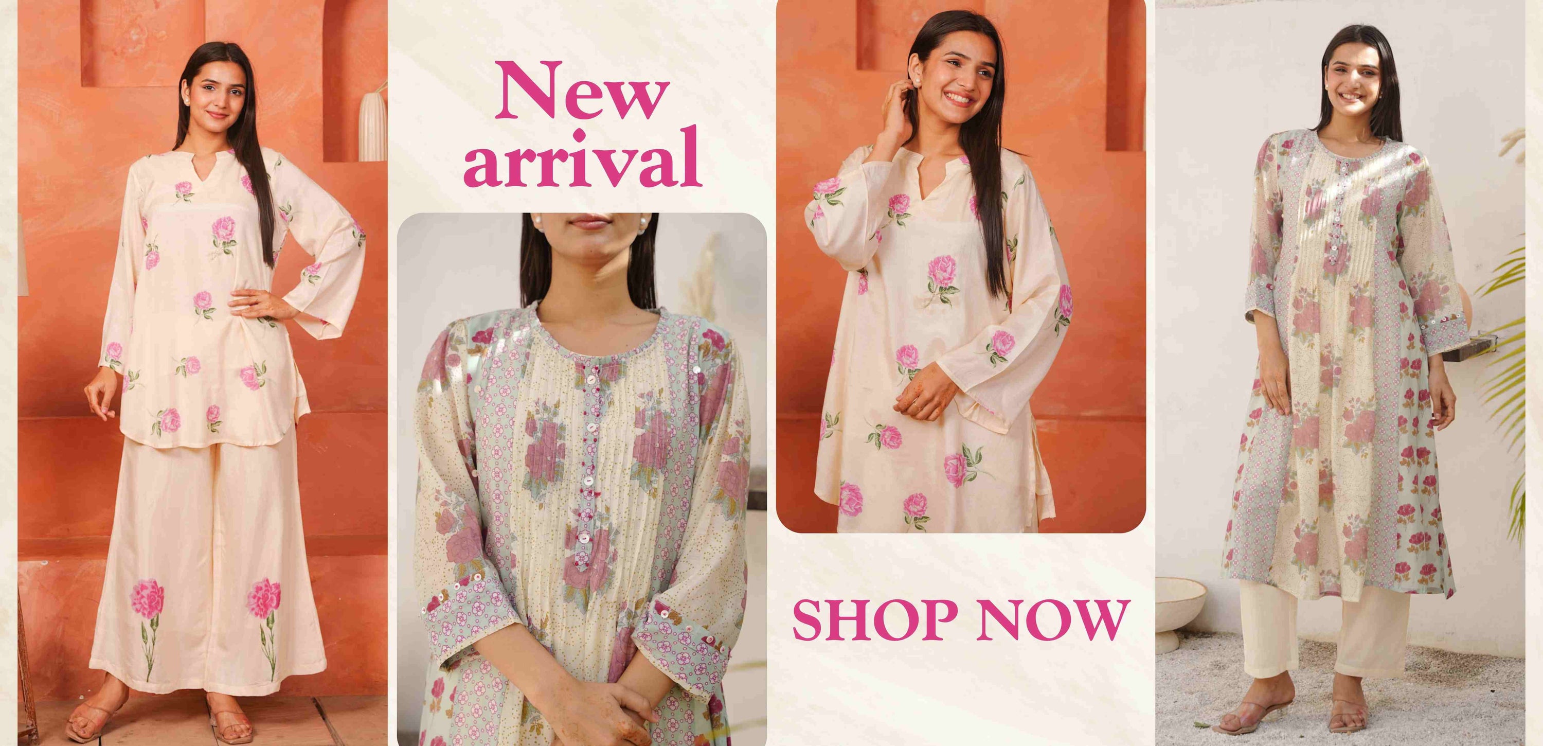 CREAM & PINK COTTON SLUB CO-ORD SET