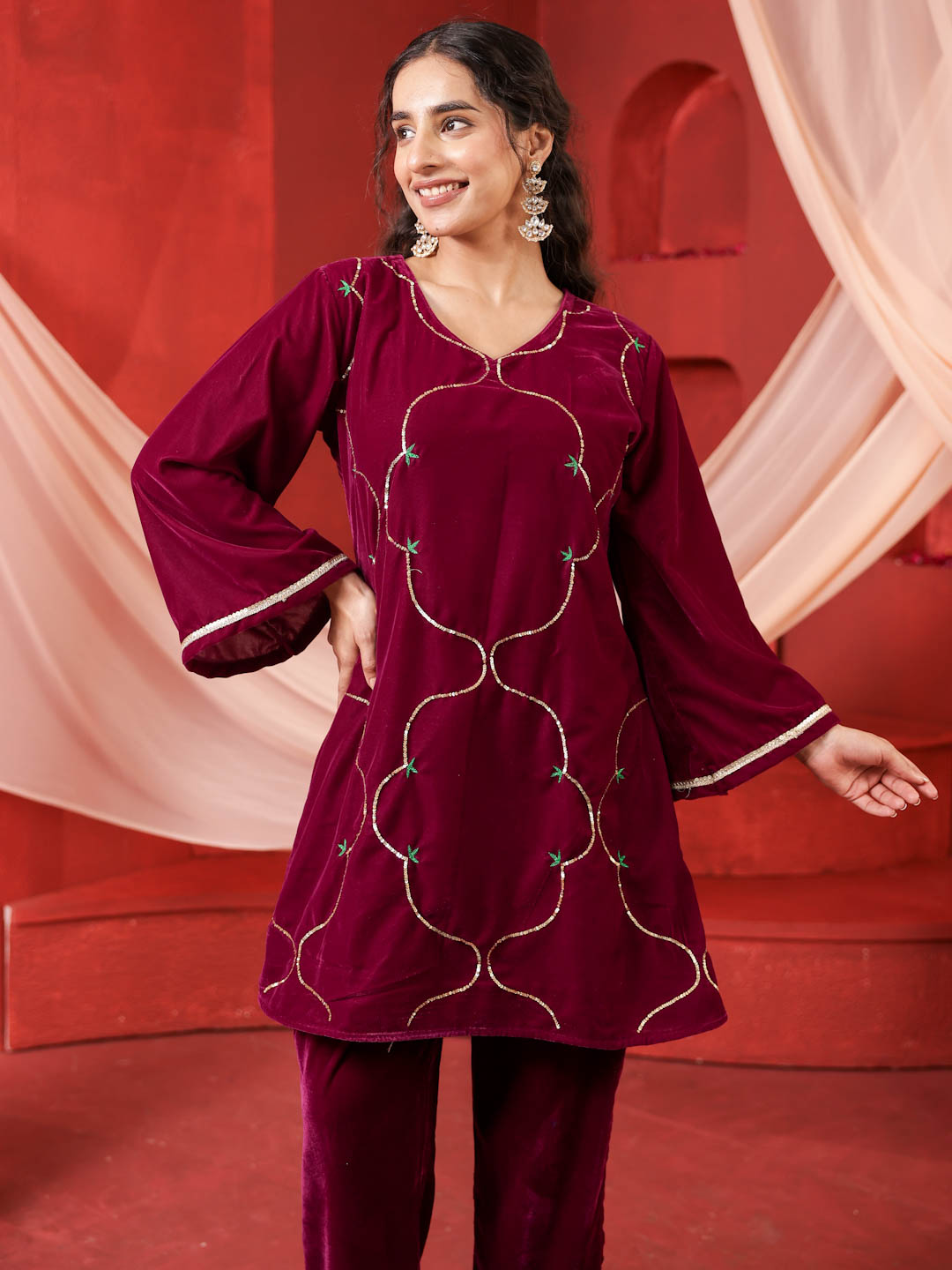 Kurta - Velvet Kurta with Sequence work