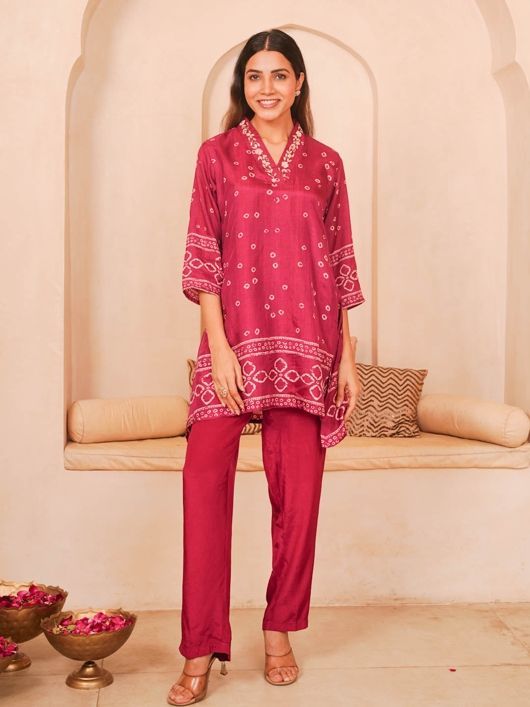 DARK ROSE PINK HANDWROK CO-ORD SET